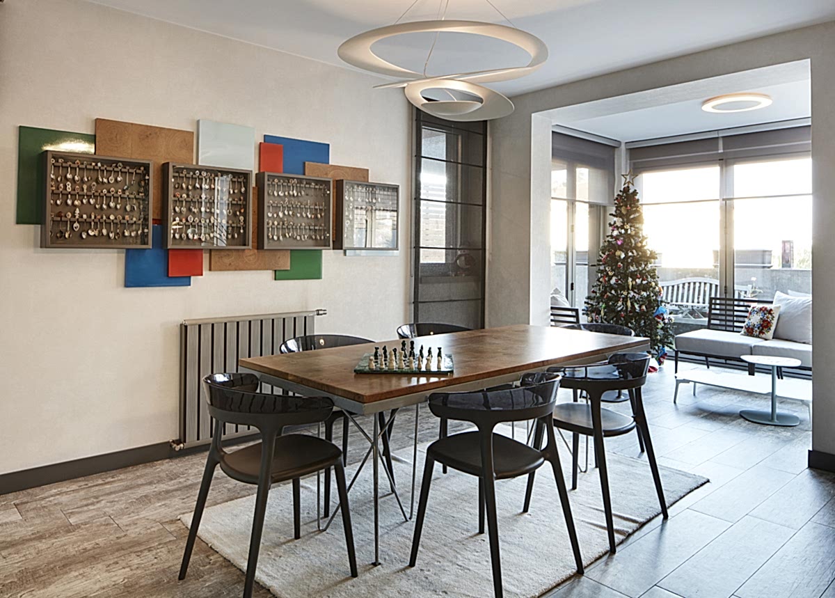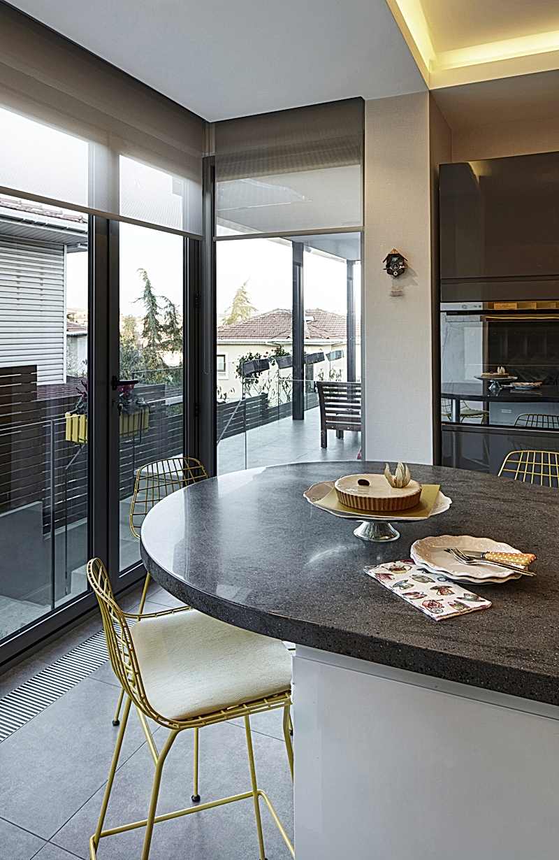 Ev sahibinin renklerle olan iyi ilişkisi, projenin her bir odasına canlı ve keskin kontrastlarla; farklı renk kodlamaları olarak yansımıştır. Ana yaşam alanında çeşitli seyahatlerden biriktirilen kaşık koleksiyonu ise evin odak parçalarından biridir.